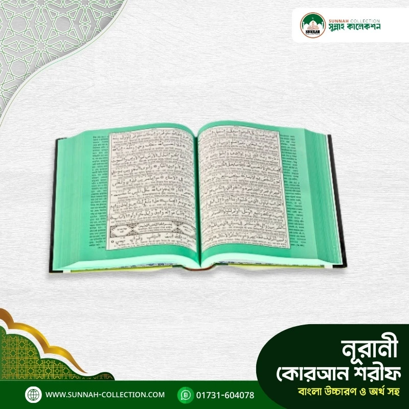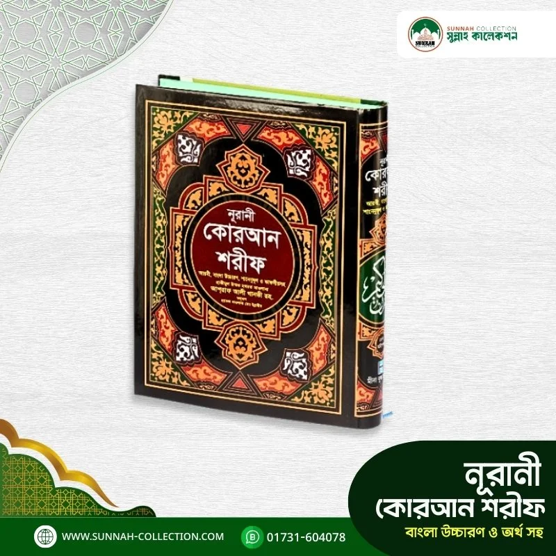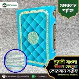 A beautiful Nurani Quran Sharif for the first time in Bengali Color. The book is printed in Beautiful color art paper with clear fonts for easy understanding. Its large in size and has large texts. The book comes with Bengali Translation, Transliteration, Tafsir and Shan e Nuzul.