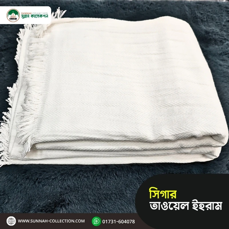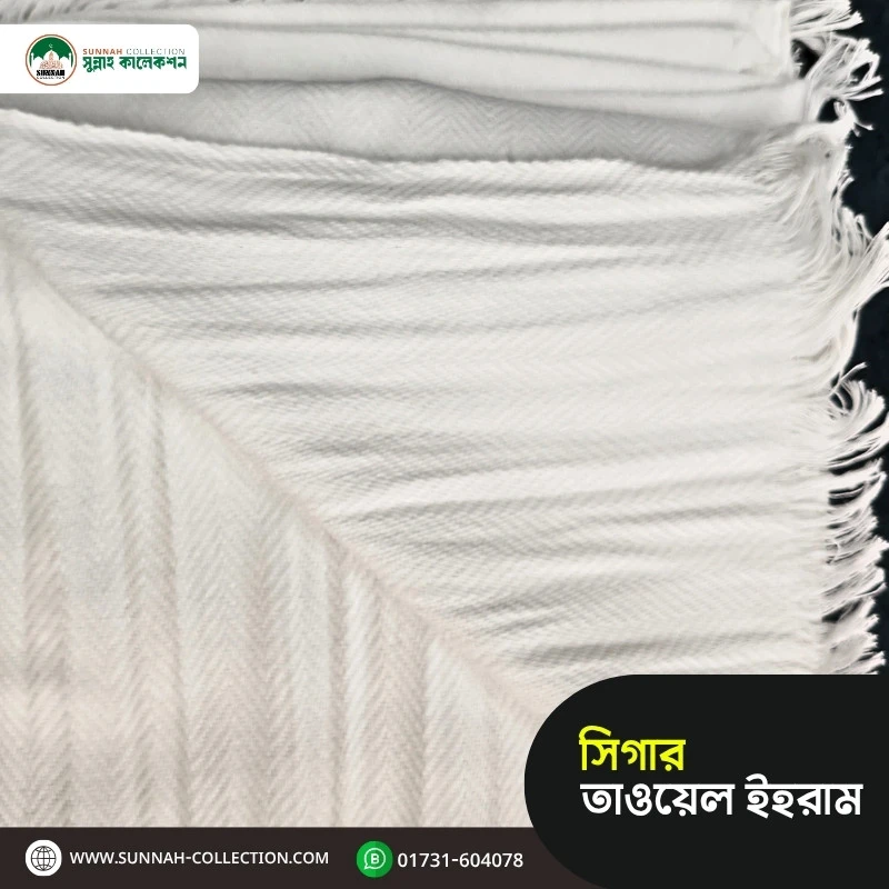 হজ ও ওমরা পালনকারীদের জন্য সিগার টাওয়েল ইহরাম একটি আরামদায়ক, টেকসই ও প্রিমিয়াম মানের ইহরাম। বিশেষ মিহি সুতার বুননে প্রস্তুত এই ইহরামটি সফরে সর্বোচ্চ স্বাচ্ছন্দ্য নিশ্চিত করে। যারা ঘন, নরম এবং দীর্ঘস্থায়ী ইহরাম চান—তাদের জন্য এটি একটি পারফেক্ট চয়েস।